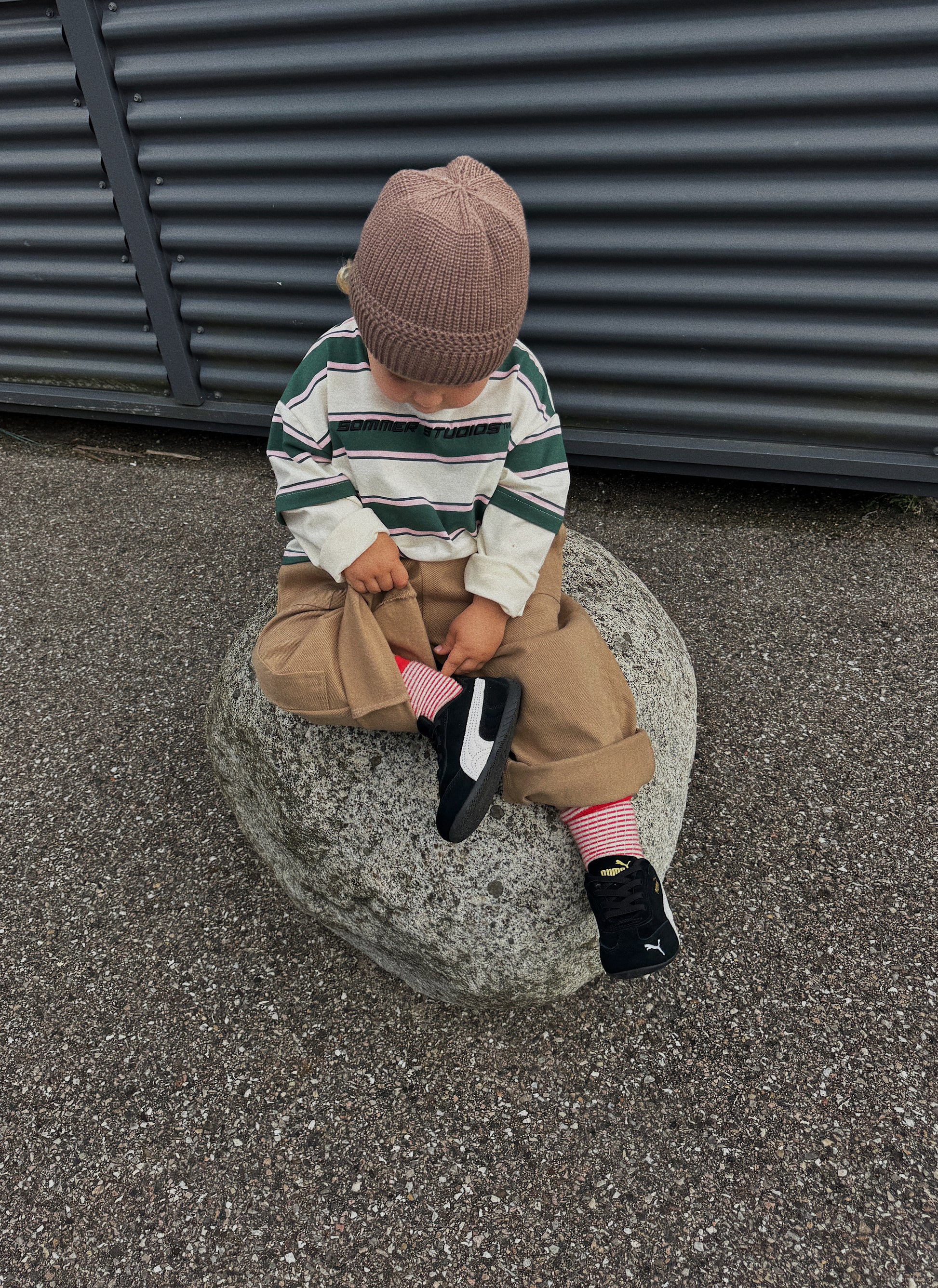 Choosing a size for your child can be a challenge, as all small children are very different in size. As a rule, we only buy clothes for the webshop that are flexible, soft and easy for all children to move in.